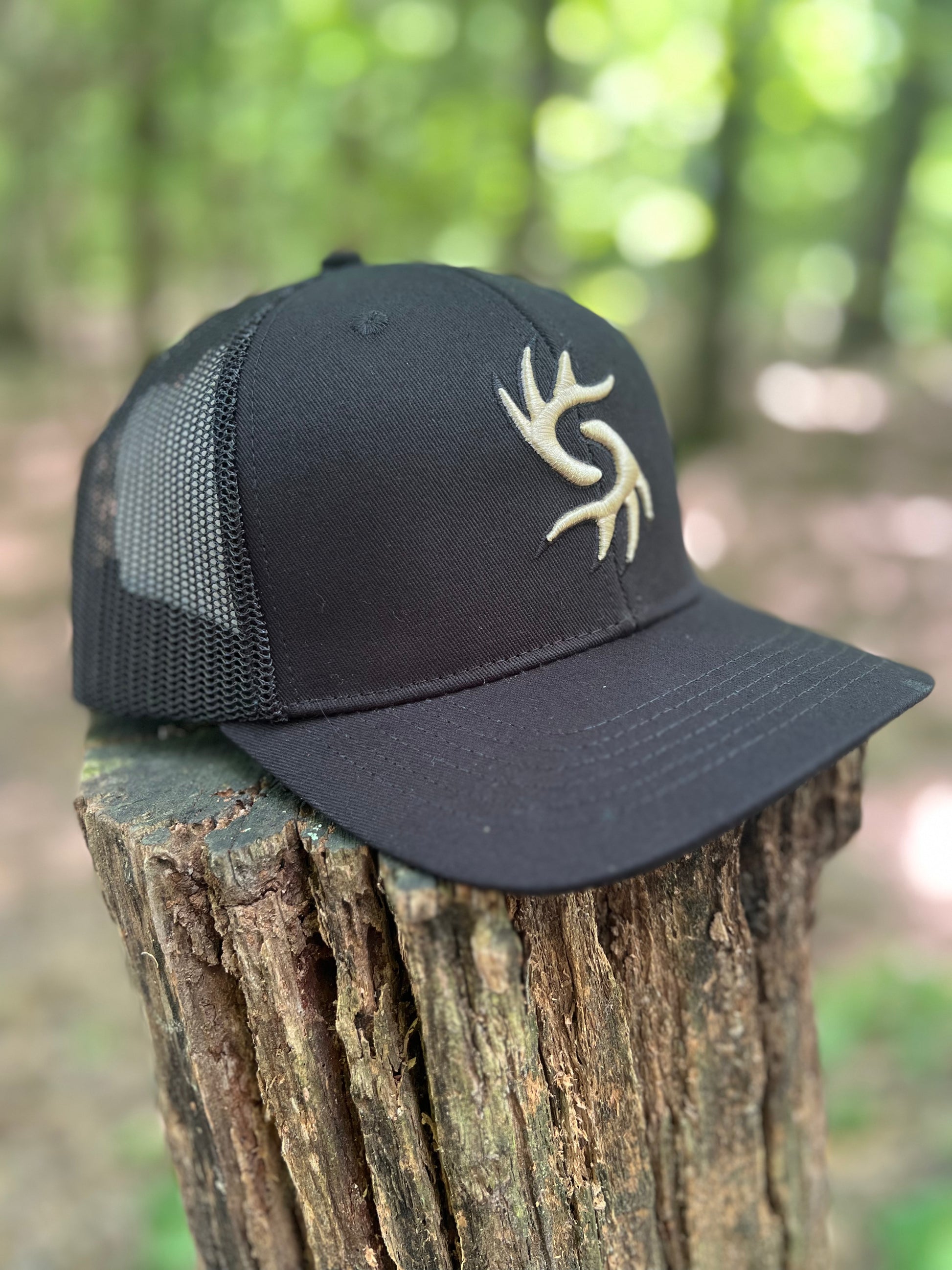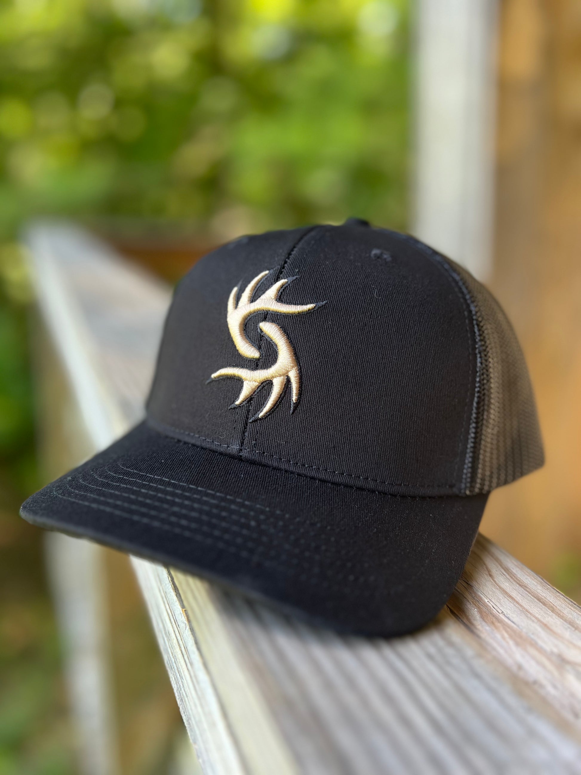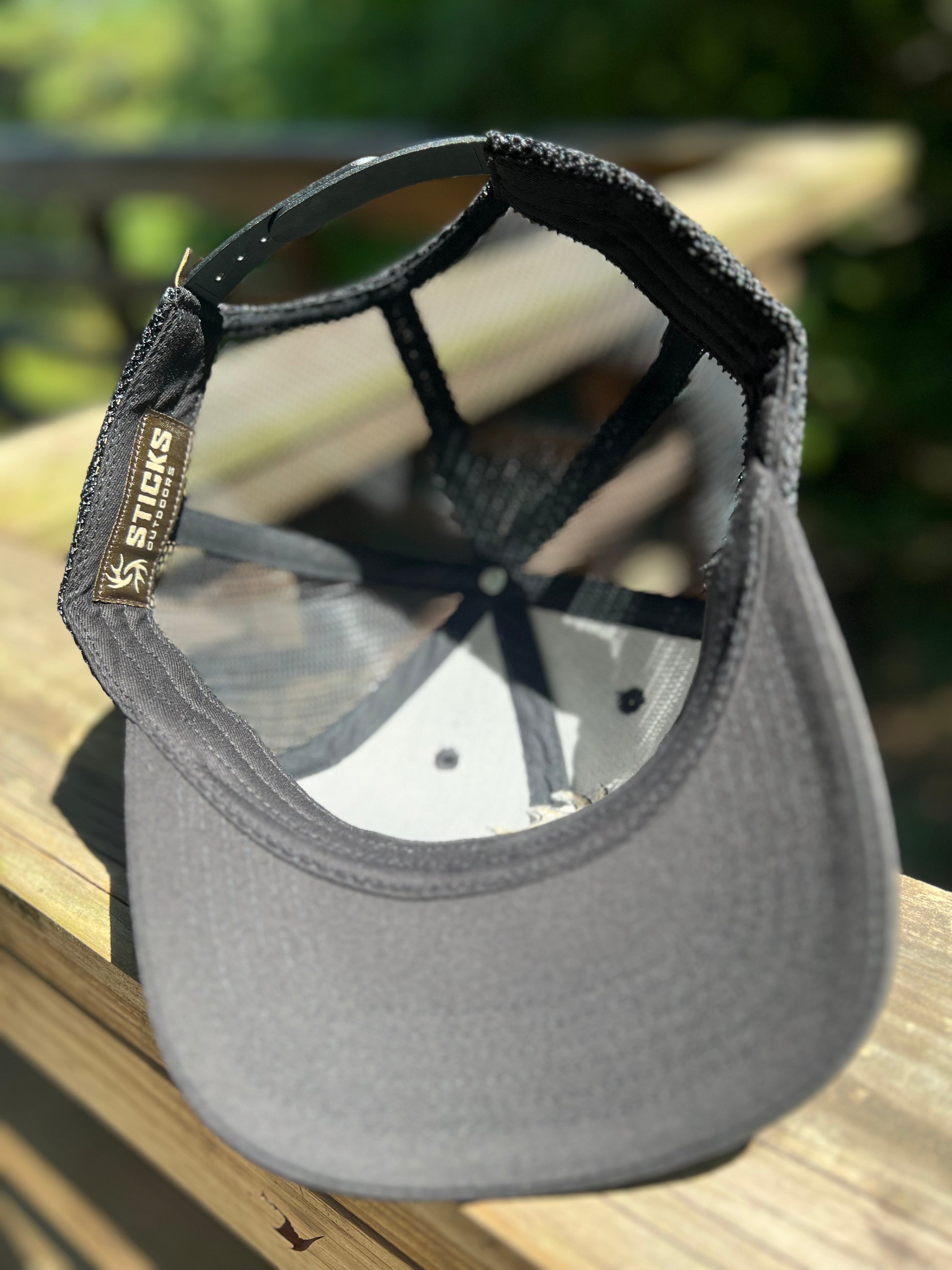 Experience comfort and style with the Black Antler Trucker Hat. Featuring a solid black front and breathable mesh back, this hat keeps you cool while showcasing the detailed 3D embroidered Sticks Antler logo. The subtle Sticks branding on the back band and inner sweatband adds a refined touch, making it a reliable choice for everyday wear.